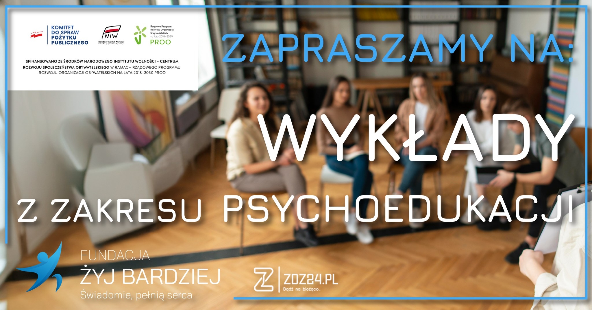 Wykład realizowany jest w ramach zadania „Rozwój działalności statutowej Fundacji Żyj Bardziej – edukacja, rozwój, integracja”, finansowanego ze środków Narodowego Instytutu Wolności w ramach rządowego programu PROO (Fundusz Inicjatyw Obywatelskich) na lata 2021–2030.