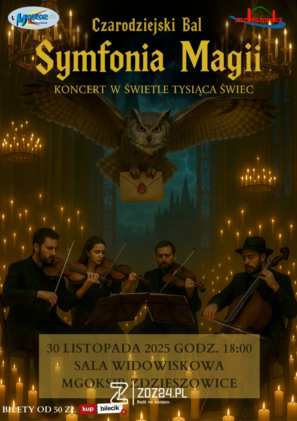 Już 30 listopada 2025 roku o godzinie 18:00 w sali widowiskowej MGOKSiR w Zdzieszowicach odbędzie się niezwykłe wydarzenie muzyczne – „Symfonia Magii – koncert w świetle tysiąca świec”.