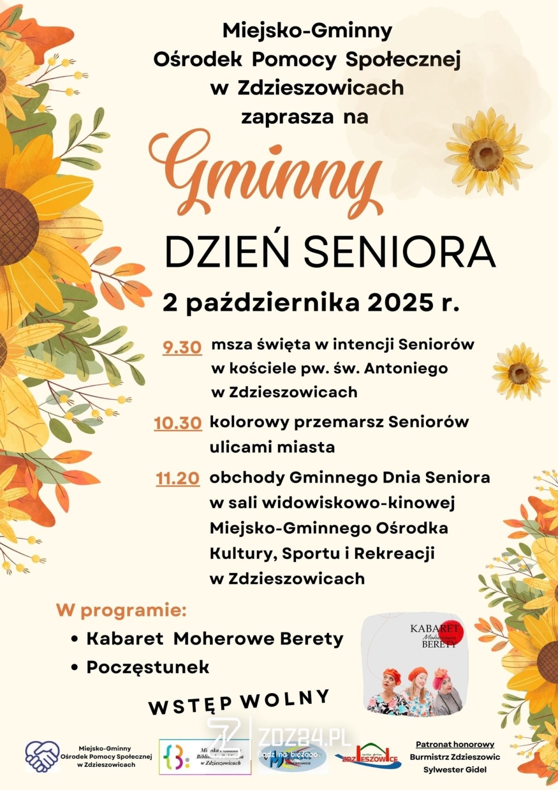 Dni Seniora odbywają się pod honorowym patronatem Burmistrza Zdzieszowic Sylwestra Gidla, przy wsparciu lokalnych instytucji i partnerów.
