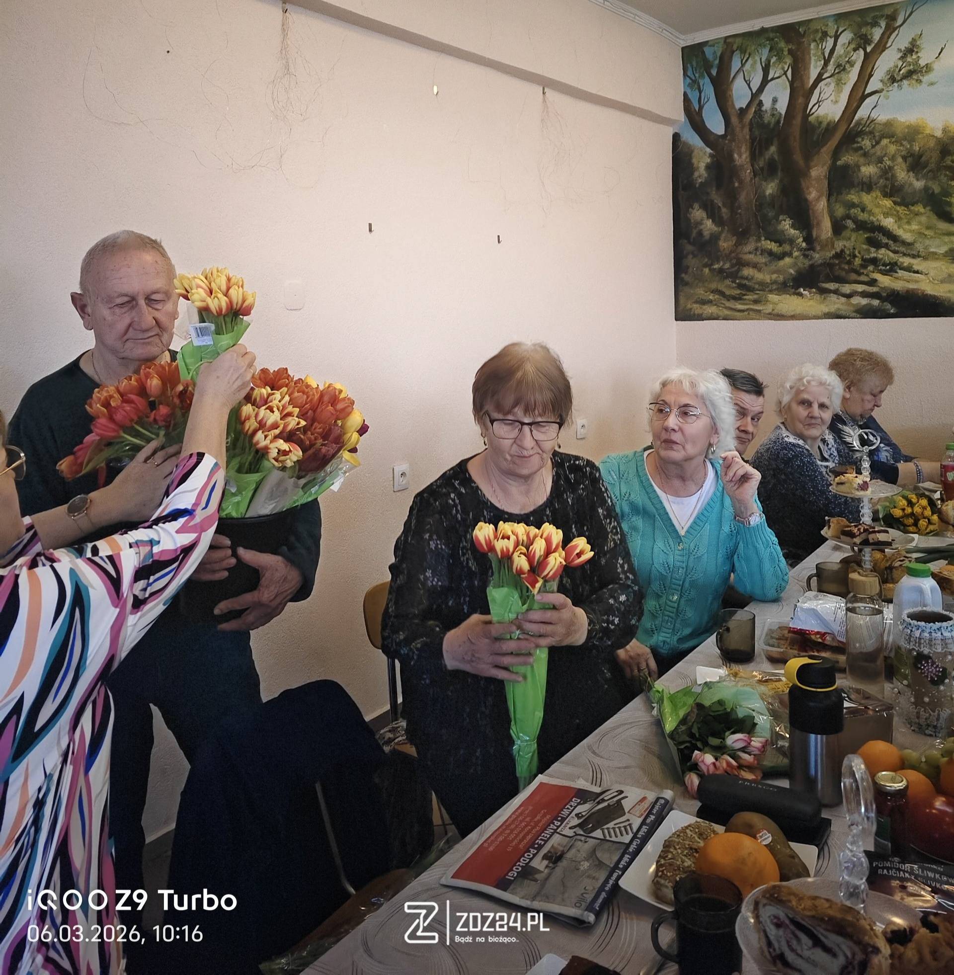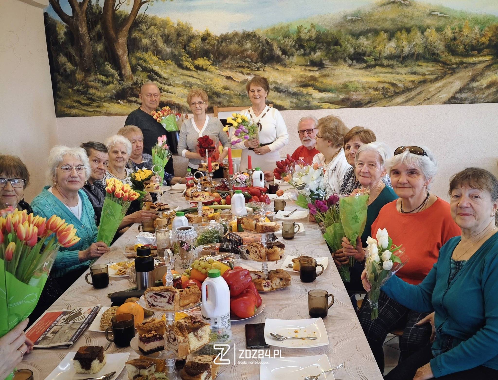 Podczas spotkania przygotowano słodki poczęstunek, a uczestnicy mogli spędzić czas na rozmowach i wspólnym świętowaniu. Nie zabrakło również kwiatów i życzeń dla pań.
