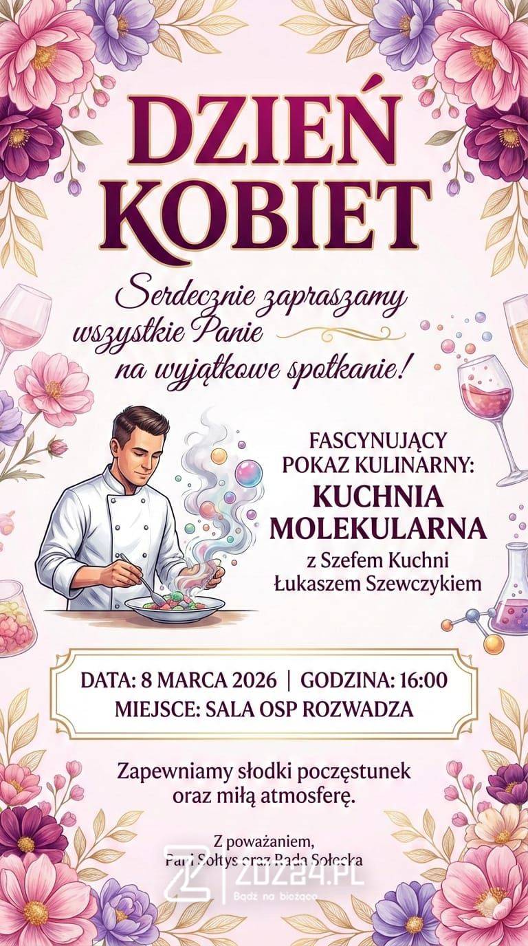 W niedzielę, 8 marca 2026 roku o godzinie 16:00 w sali OSP w Rozwadzy odbędzie się spotkanie z okazji Dnia Kobiet skierowane do mieszkanek sołectwa.