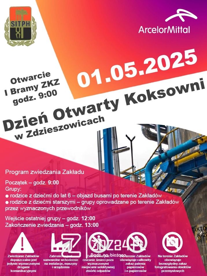 Wydarzenie rozpocznie się o godzinie 9:00, a wejście będzie możliwe przez I Bramę Zakładów Koksowniczych Zdzieszowice. Dla rodzin z dziećmi do lat 6 przygotowano objazd busami po terenie zakładu, natomiast starsi uczestnicy będą oprowadzani pieszo przez przewodników. Ostatnie wejście zaplanowano na godz. 12:00, a całe zwiedzanie zakończy się o 13:00.