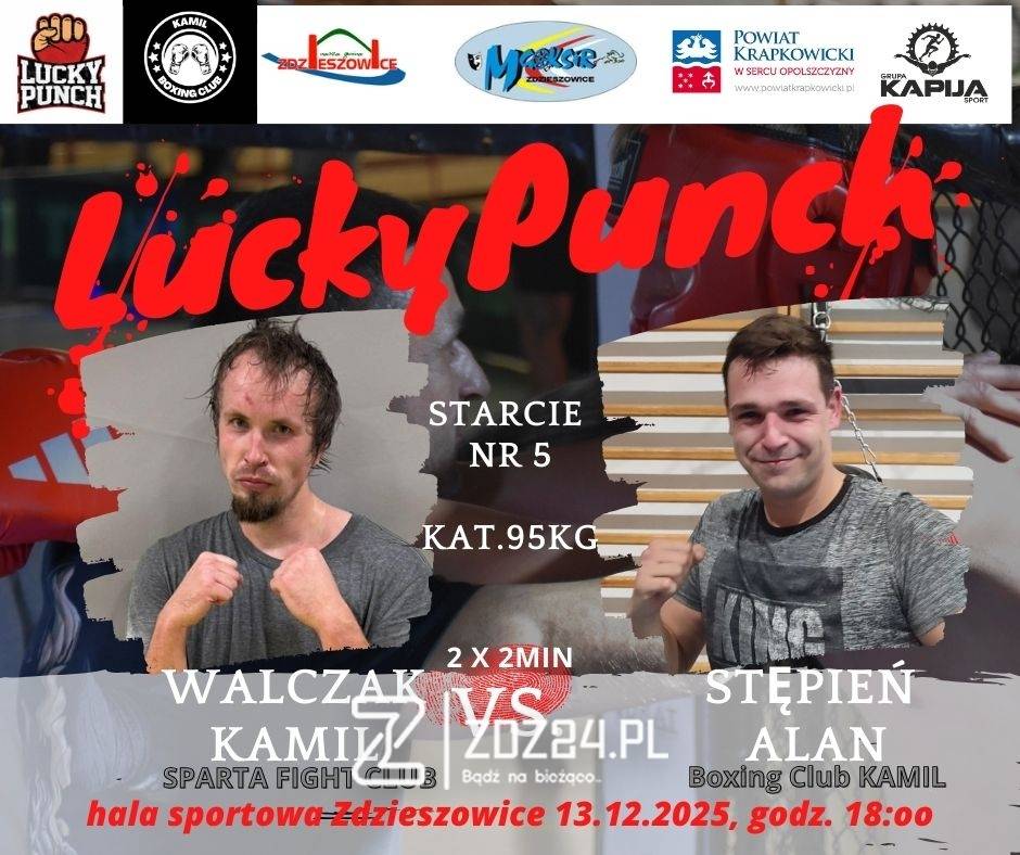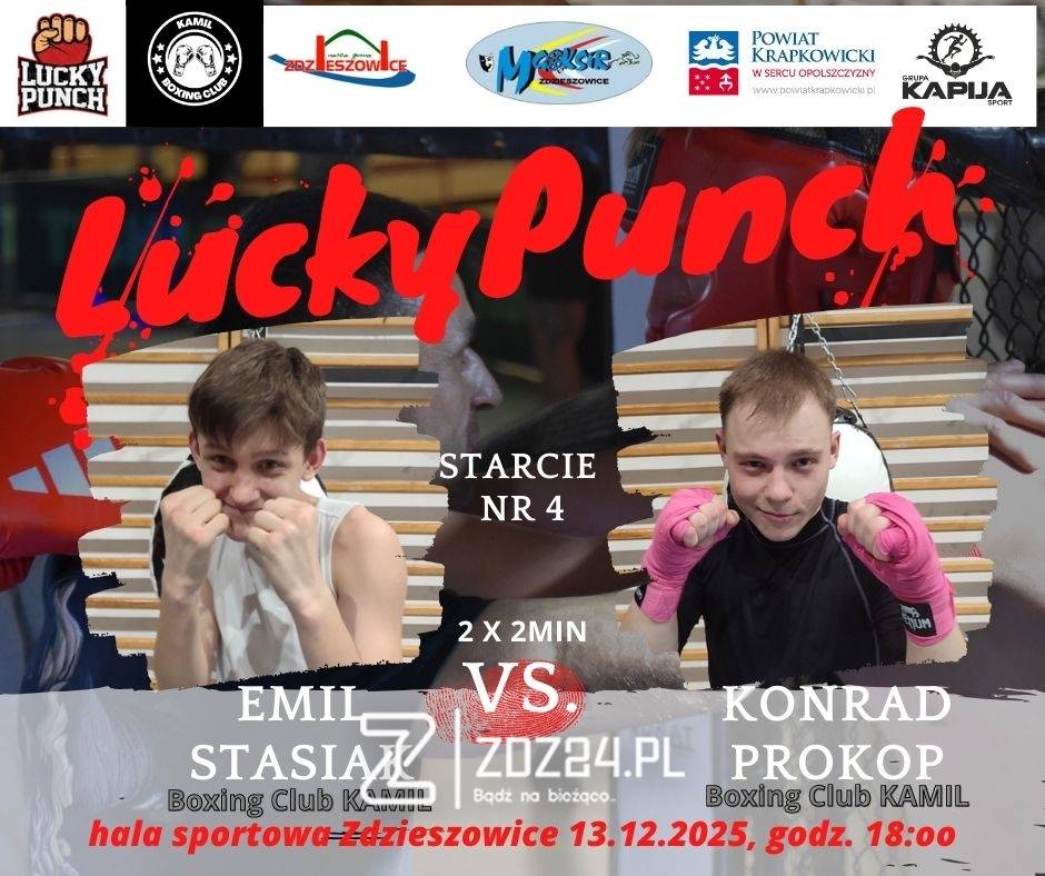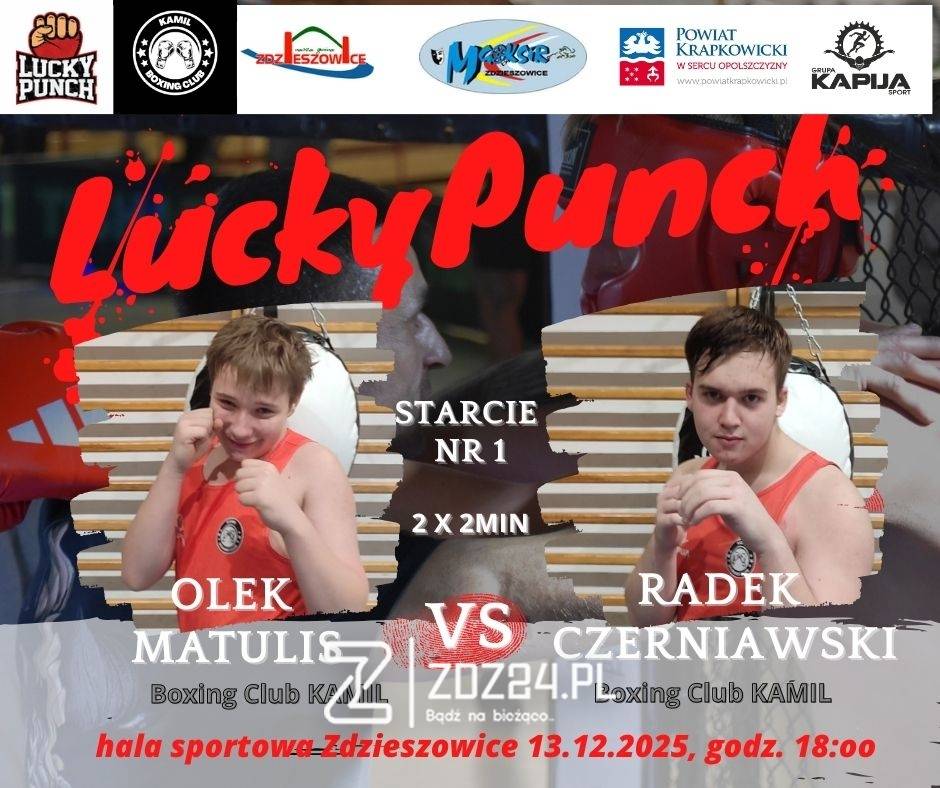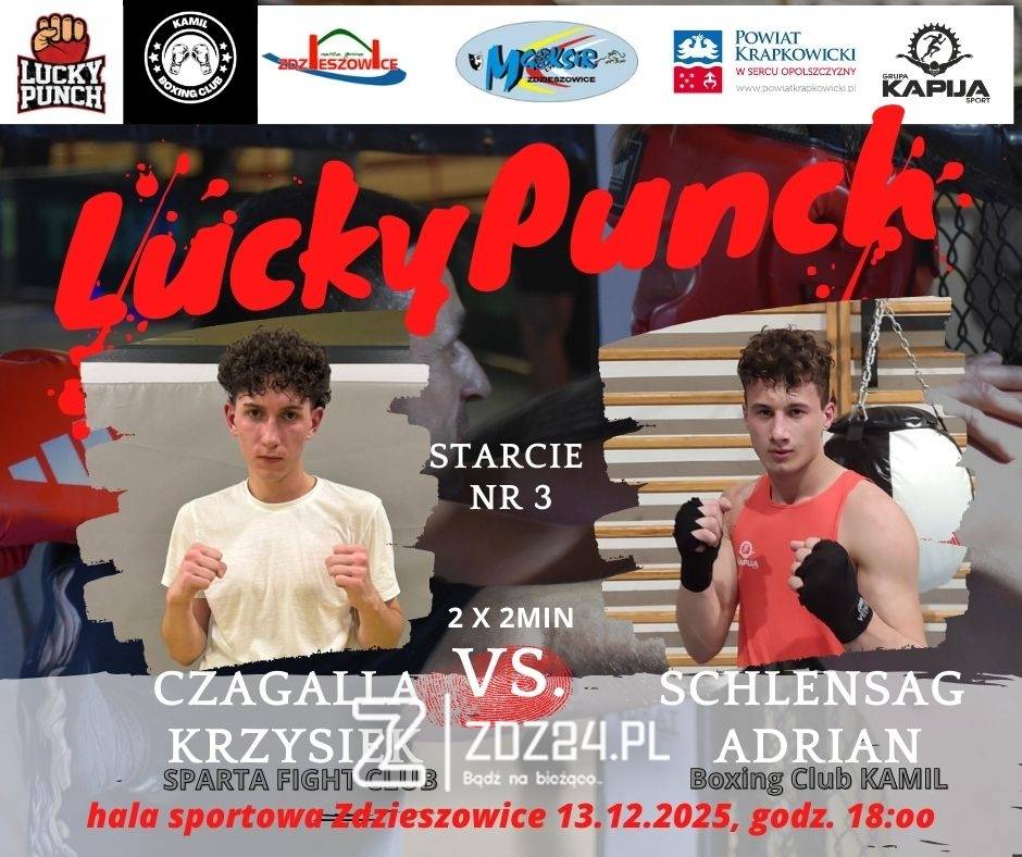 W sobotni wieczór, 13 grudnia 2025 r., w hali sportowej w Zdzieszowicach odbędzie się wyjątkowe wydarzenie sportowo-charytatywne – Gala Boksu „Lucky Punch”. W ringu zaprezentują się zawodnicy reprezentujący lokalne i regionalne kluby bokserskie: Boxing Club KAMIL, Sparta Fight Club oraz Valhalla Gym.
