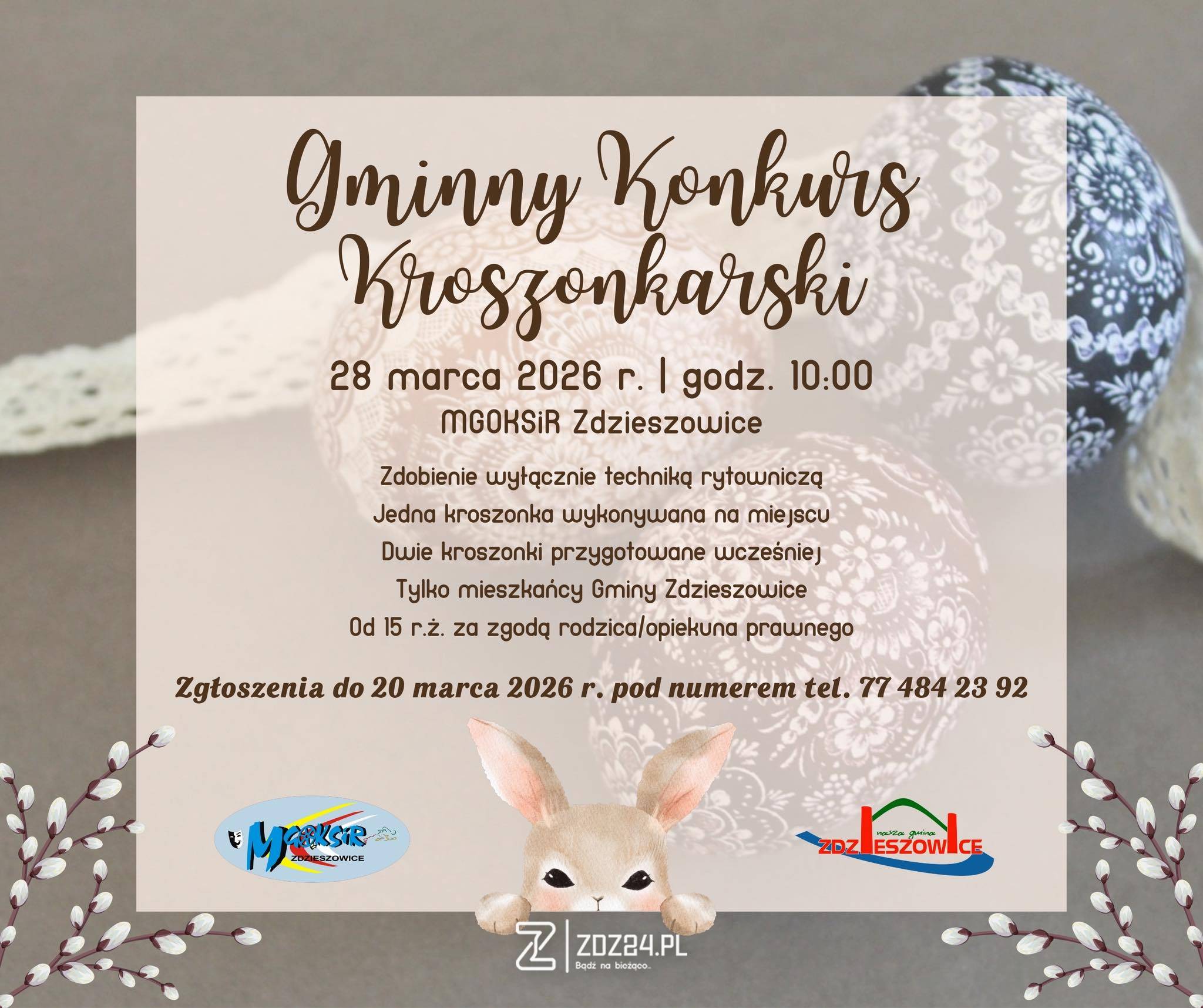 W Zdzieszowicach odbędzie się kolejna edycja Gminnego Konkursu Kroszonkarskiego, który nawiązuje do wieloletniej śląskiej tradycji zdobienia wielkanocnych jaj. Wydarzenie zaplanowano na 28 marca 2026 roku o godzinie 10:00 w Miejsko-Gminnym Ośrodku Kultury, Sportu i Rekreacji w Zdzieszowicach.
