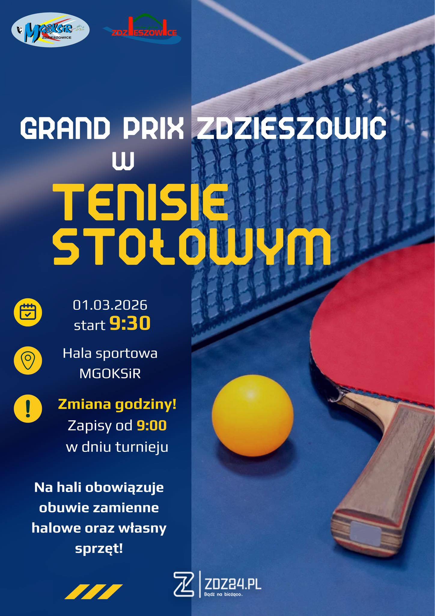 1 marca 2026 roku w hali sportowej MGOKSiR w Zdzieszowicach odbędzie się kolejny etap Grand Prix Zdzieszowic w tenisie stołowym.