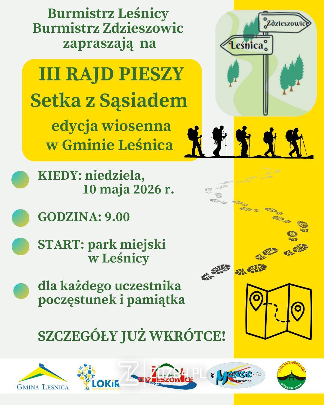 W maju odbędzie się III Rajd Pieszy „Setka z Sąsiadem” – edycja wiosenna. Wydarzenie organizowane jest wspólnie przez samorządy Leśnicy i Zdzieszowic, a jego tegoroczna odsłona zaplanowana została na teren Gminy Leśnica.