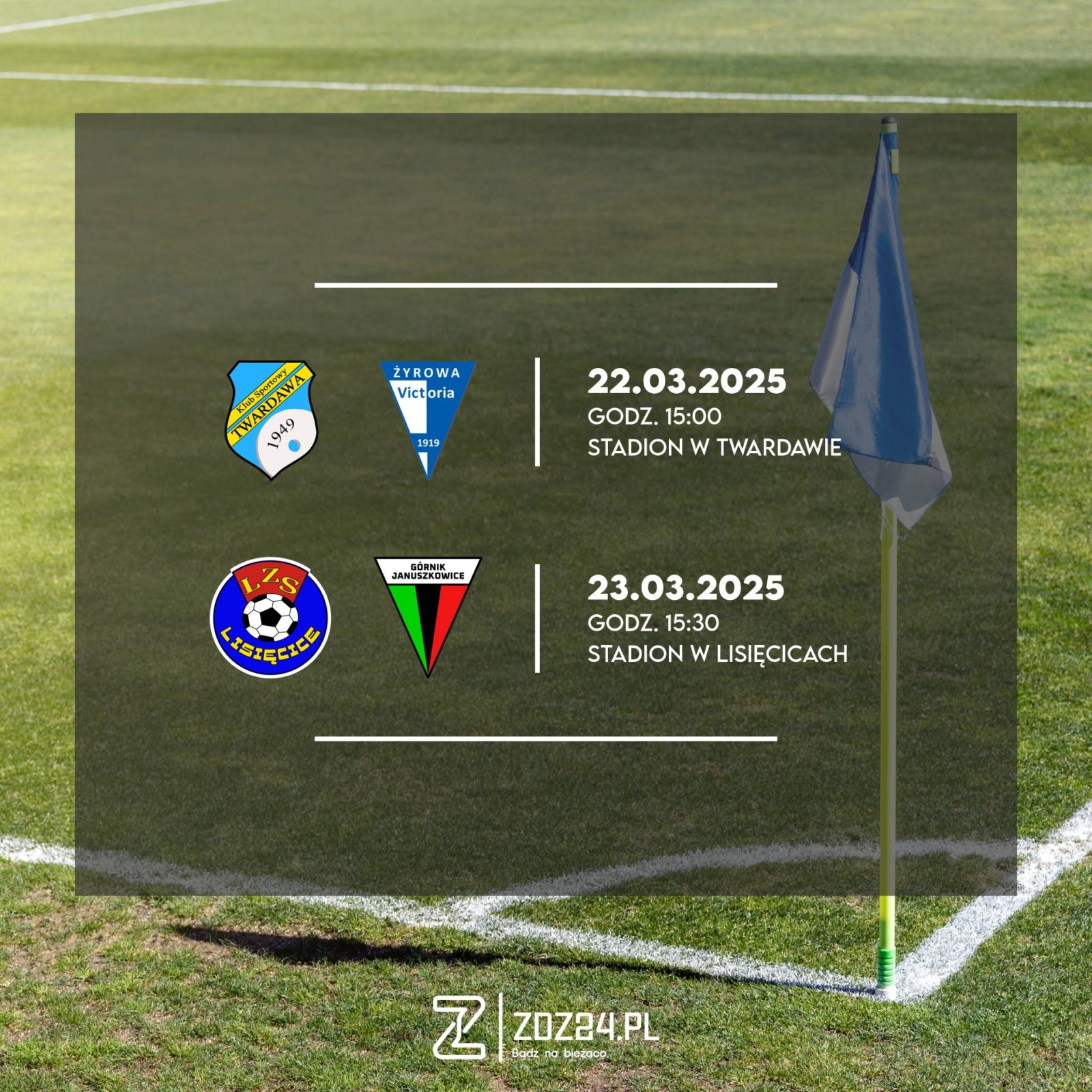 W sobotę, 22 marca, LZS Raszowa zmierzy się na własnym boisku z drużyną LKS Victoria Żyrowa w ramach Terytorialnej Ligi Trampkarzy (gr. 5). Również tego dnia SMWSiR Koksownik Zdzieszowice uda się na wyjazd do Źlinic, gdzie rywalizować będzie z ULKS Orzeł II Źlinice.