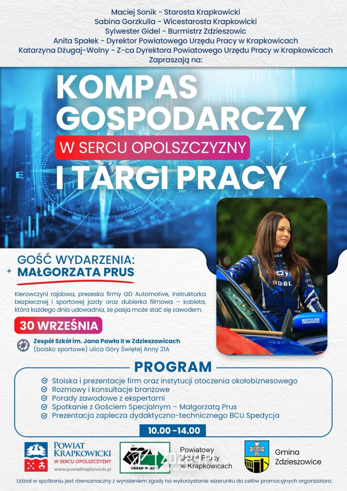 30 września 2025 r. w Zespole Szkół im. Jana Pawła II w Zdzieszowicach odbędzie się wydarzenie pod nazwą „Kompas Gospodarczy w Sercu Opolszczyzny i Targi Pracy”.