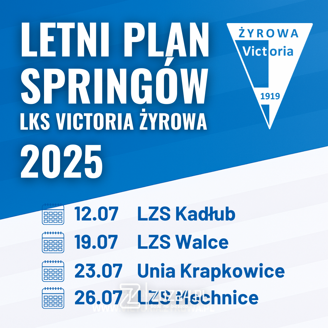 Drużyna LKS Victoria Żyrowa rozpoczęła letni cykl meczów sparingowych, mających na celu przygotowanie do sezonu ligowego 2025/2026. Pierwszy mecz rozegrany zostanie 12 lipca (sobota) o godzinie 10:30 w Januszkowicach, a rywalem będzie zespół LZS Kadłub.