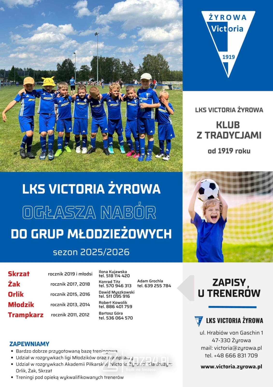 LKS Victoria Żyrowa, klub z ponad stuletnią tradycją, rozpoczął nabór do grup młodzieżowych na nadchodzący sezon piłkarski. Do udziału zaproszono dzieci i młodzież z roczników 2011–2019.