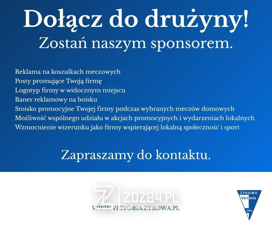 Zainteresowani sponsorzy proszeni są o kontakt poprzez stronę: www.victoria.zyrowa.pl