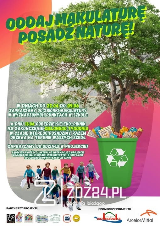 Od 22 kwietnia do 9 czerwca 2025 r. w szkołach podstawowych i ponadpodstawowych na terenie gminy Zdzieszowice trwa akcja zbiórki makulatury pod nazwą „Oddaj makulaturę – posadź naturę”. Projekt ma na celu edukację ekologiczną oraz podniesienie świżyści ekologicznej mieszkańców.