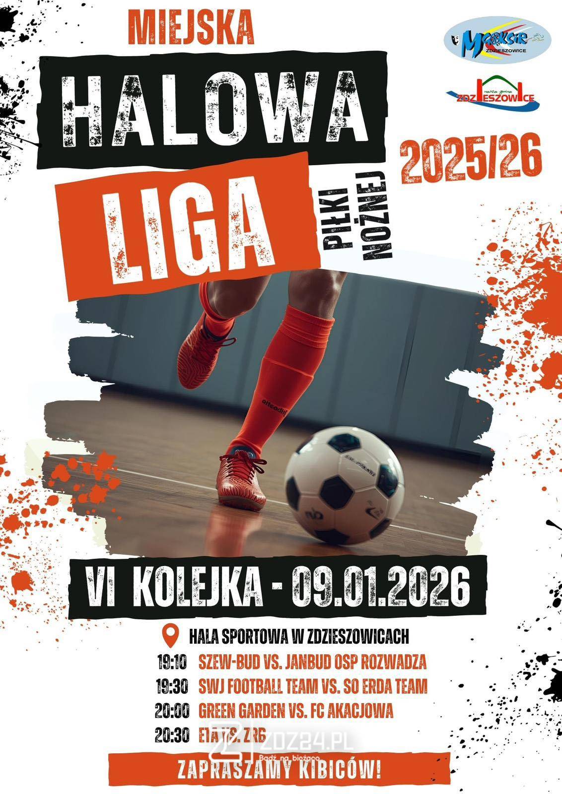 W piątek, 9 stycznia 2026 roku, w Hali Sportowej w Zdzieszowicach odbędzie się szósta kolejka Miejskiej Halowej Ligi Piłki Nożnej sezonu 2025/2026.