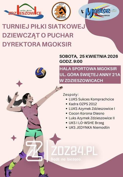 25 kwietnia 2026 roku w hali sportowej MGOKSiR w Zdzieszowicach odbędzie się Turniej Piłki Siatkowej Dziewcząt o Puchar Dyrektora MGOKSiR. Początek zawodów zaplanowano na godz. 9:00.