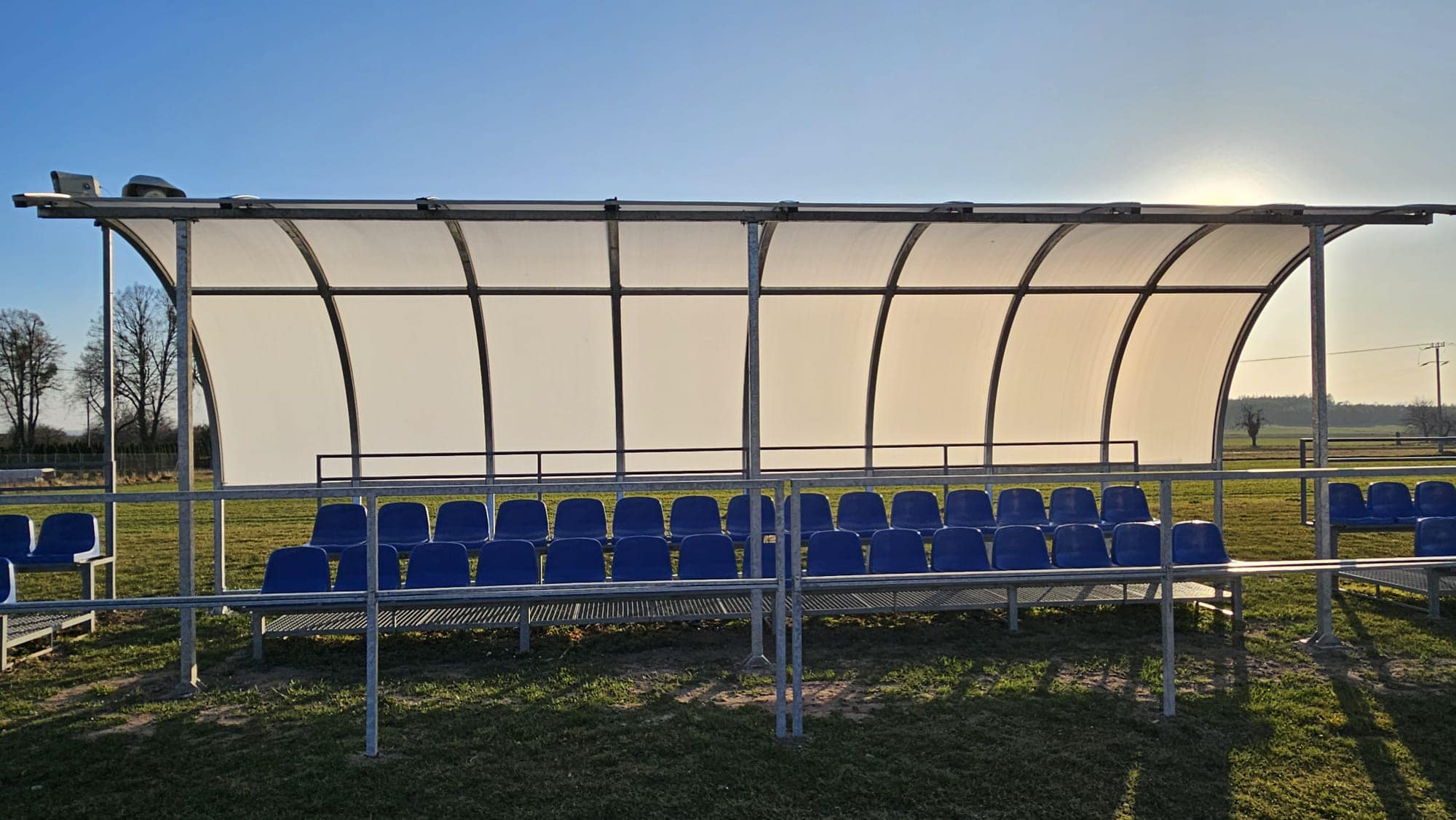 - Zadaszenie jednej z trybun – zapewniające komfort i ochronę kibicom przed warunkami atmosferycznymi.