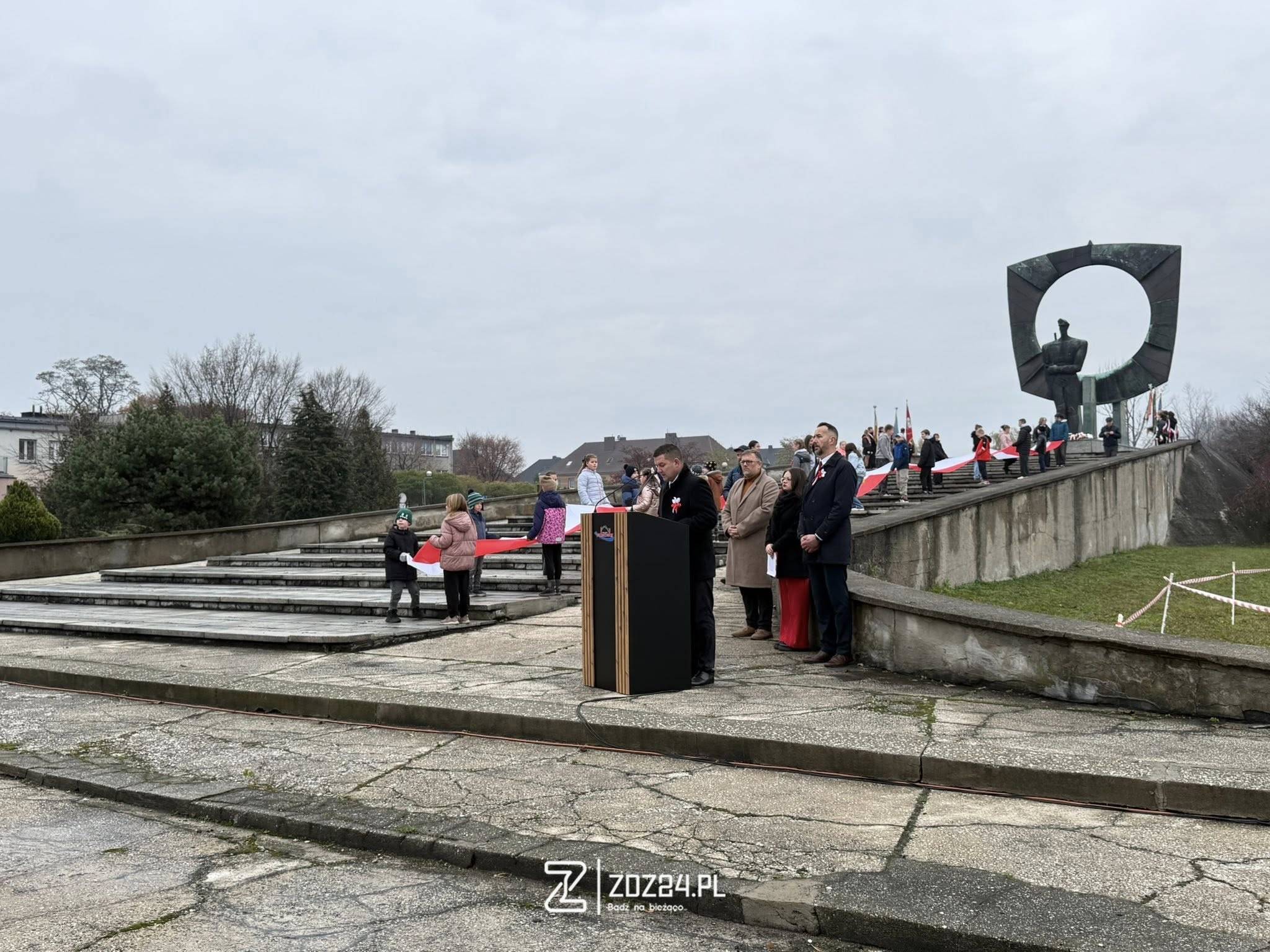 Podczas ceremonii przy dźwiękach Orkiestry ArcelorMittal Zdzieszowice wspólnie odśpiewano hymn narodowy. Symbolicznym i poruszającym momentem było rozwinięcie przez dzieci długiej biało-czerwonej flagi – gest jedności i patriotyzmu.