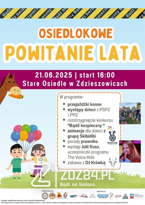 21 czerwca 2025 r. o godzinie 16:00 na Starym Osiedlu w Zdzieszowicach odbędzie się impreza plenerowa pt. „Osiedlowe Powitanie Lata”. Wydarzenie skierowane jest do mieszkańców w każdym wieku.