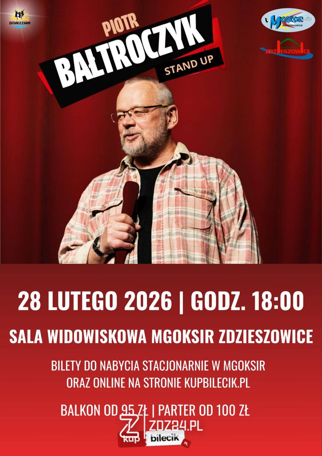 Mieszkańcy Zdzieszowic i okolic będą mieli okazję przeżyć niezapomniany wieczór pełen humoru. Już 28 lutego 2026 roku o godzinie 18:00 w sali widowiskowej Miejsko-Gminnego Ośrodka Kultury, Sportu i Rekreacji w Zdzieszowicach wystąpi znany i ceniony artysta – Piotr Bałtroczyk.