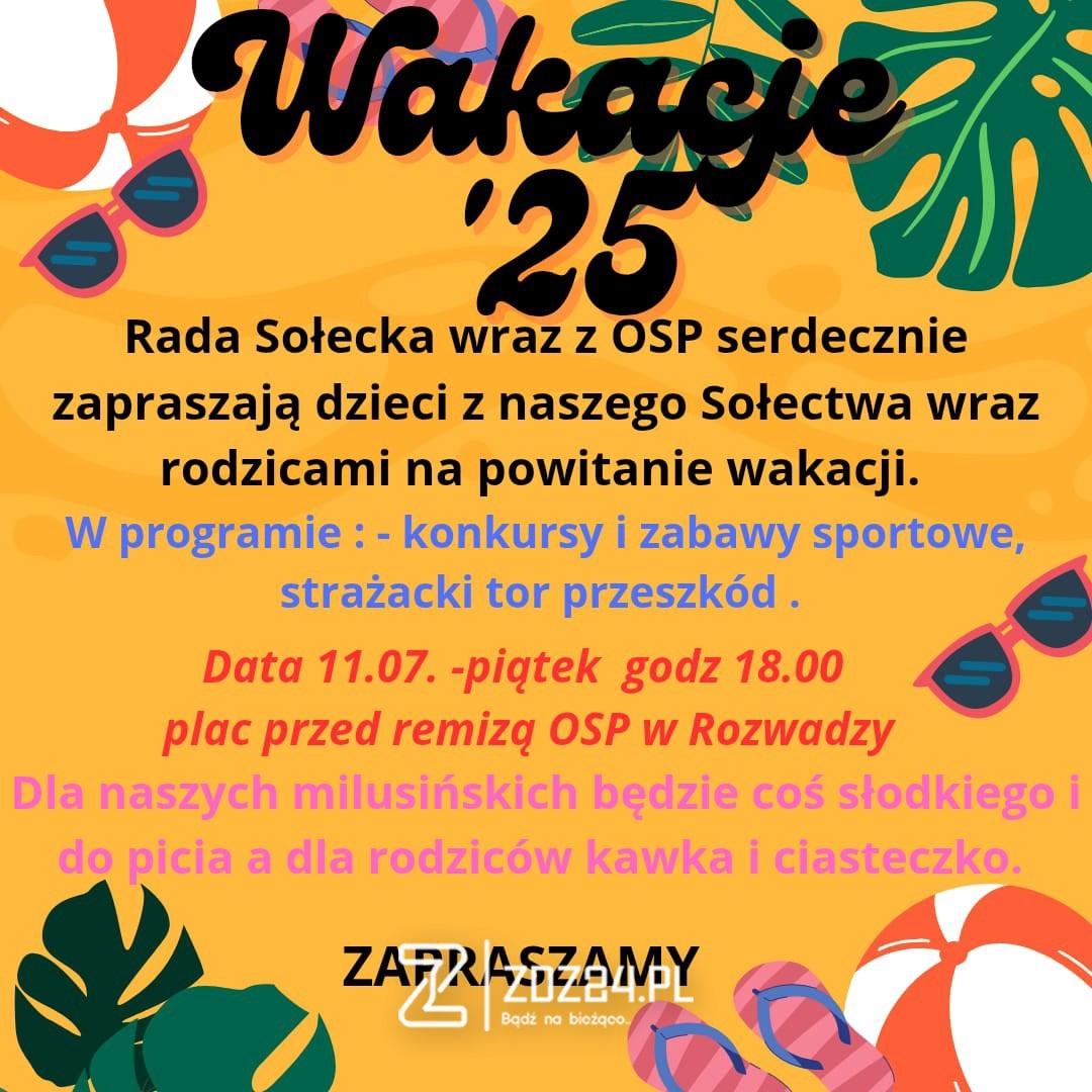 W piątek 11 lipca 2025 roku o godzinie 18:00 na placu przed remizą OSP w Rozwadzy odbędzie się wydarzenie z okazji rozpoczęcia wakacji, organizowane przez Radę Sołecką oraz miejscową jednostkę Ochotniczej Straży Pożarnej.