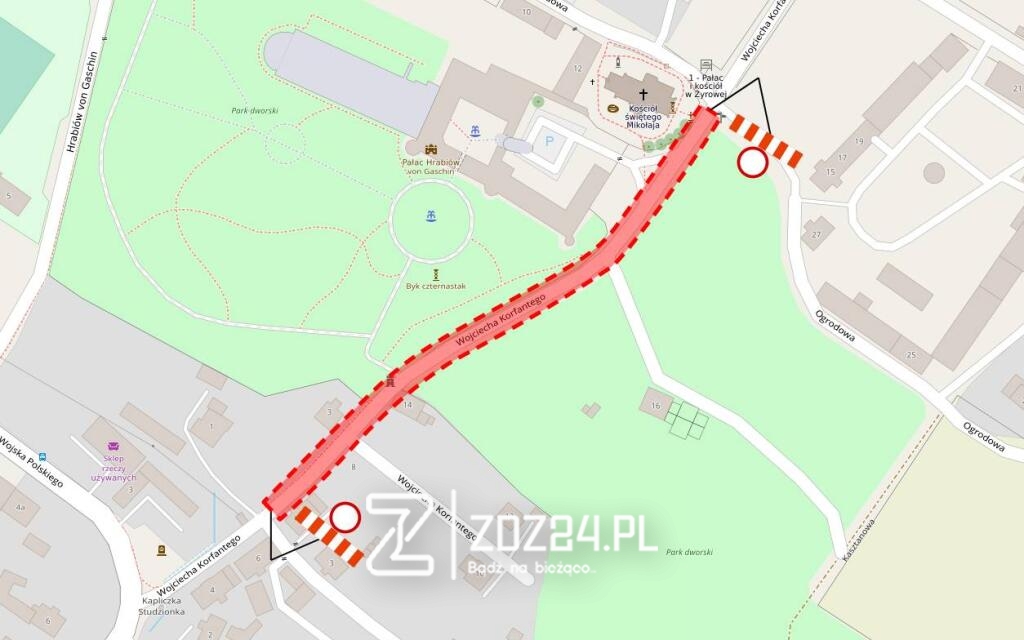 Zakaz wjazdu obowiązywać będzie na odcinku objętym robotami, przy czym zostanie utrzymana możliwość dojazdu do posesji zlokalizowanych przy ul. Korfantego.