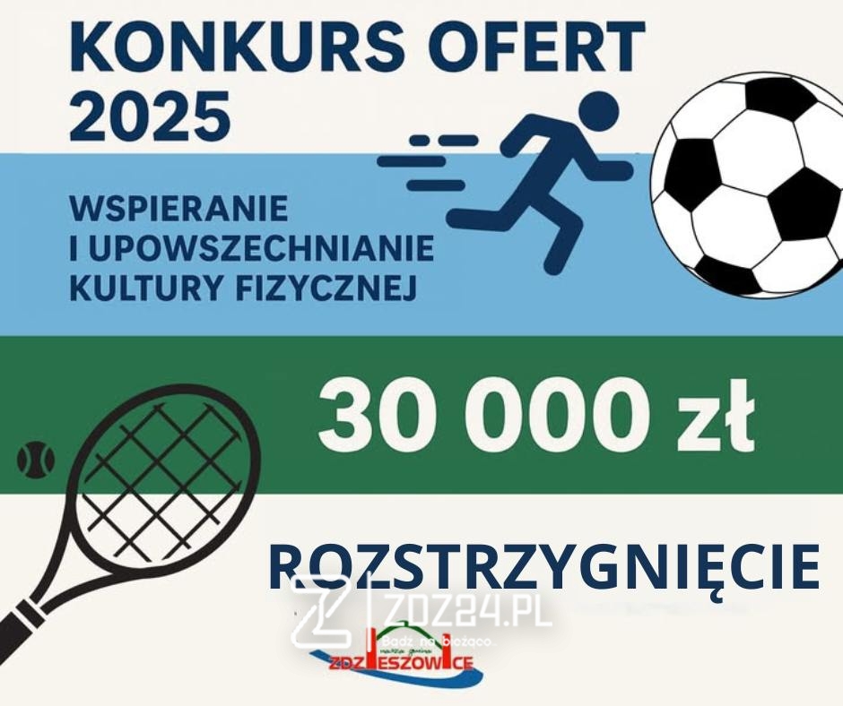 Burmistrz Zdzieszowic zatwierdził wyniki otwartego konkursu ofert na realizację zadań publicznych w zakresie wspierania i upowszechniania kultury fizycznej na 2025 rok.