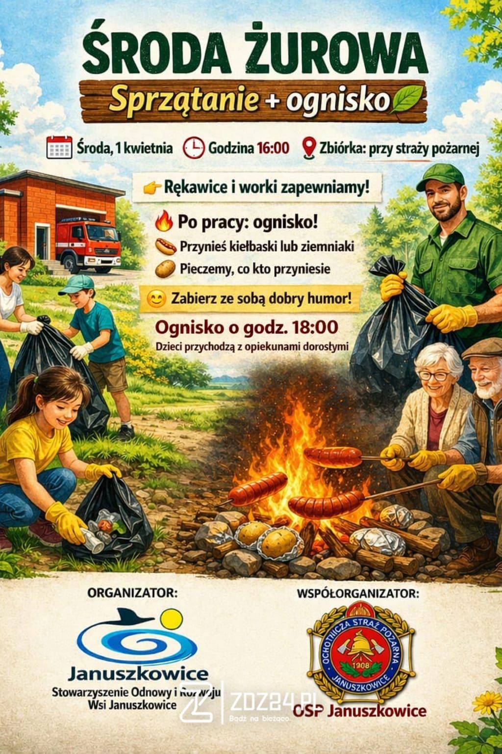 W Januszkowicach odbędzie się Środa Żurowa, czyli wspólna akcja sprzątania miejscowości połączona z integracyjnym ogniskiem. Wydarzenie zaplanowano na środę, 1 kwietnia.