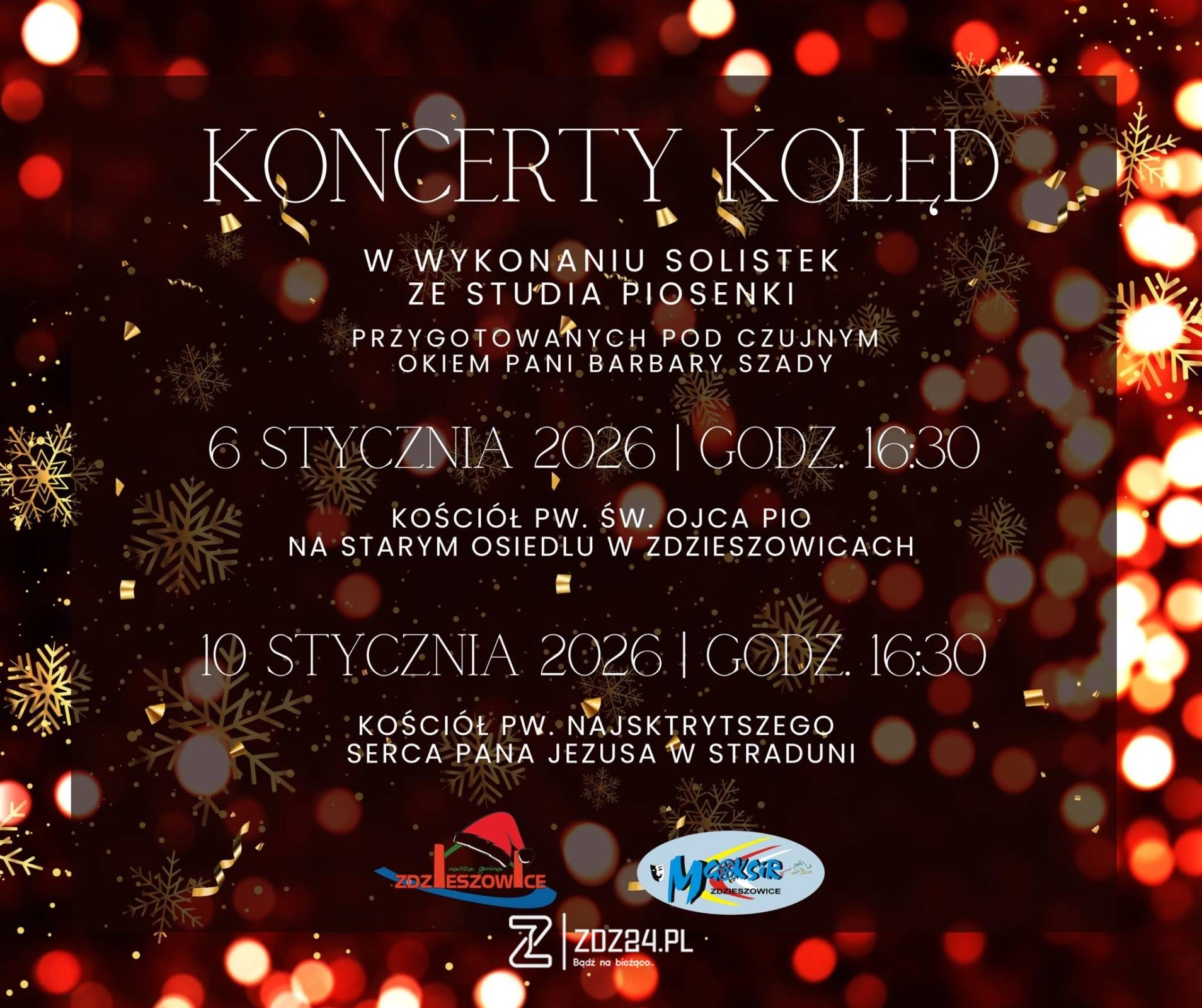 W styczniu 2026 roku odbędą się dwa wyjątkowe Koncerty Kolęd w wykonaniu uzdolnionych solistek ze Studia Piosenki działającego przy MGOKSiR Zdzieszowice. Młode wokalistki, przygotowywane przez Barbarę Szady, zaprezentują najbardziej znane i wzruszające kolędy oraz pastorałki.