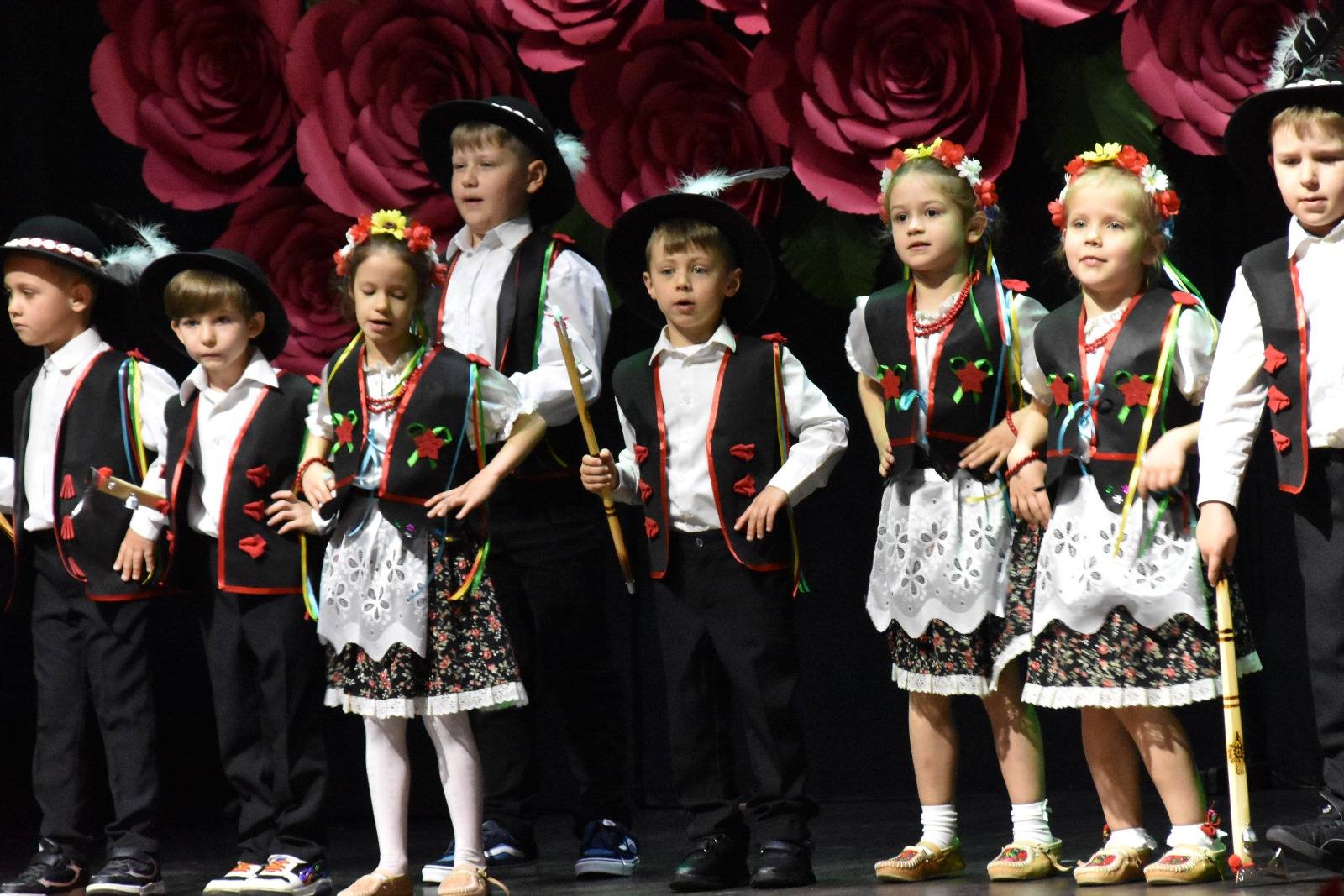 Publiczność miała okazję podziwiać występy przedszkolaków, które zachwyciły zarówno energią, jak i wysokim poziomem artystycznym. Dzieci zaprezentowały się w barwnych strojach ludowych, z ogromnym zaangażowaniem wykonując tradycyjne układy taneczne.