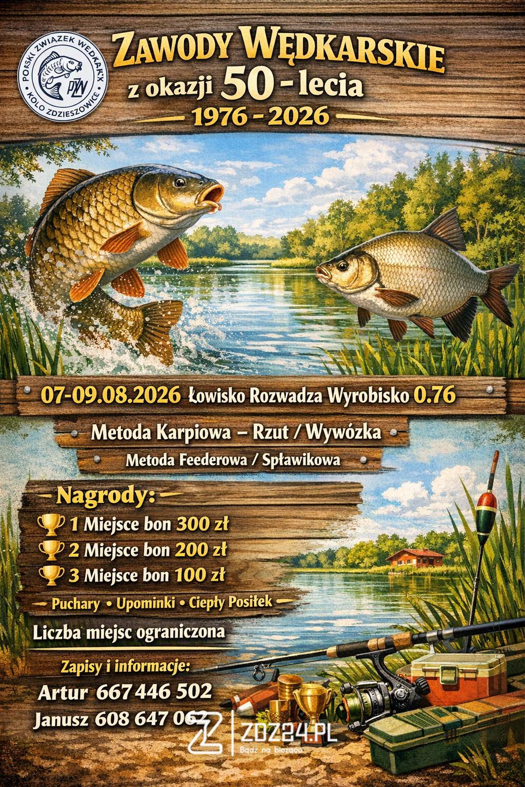Koło Polskiego Związku Wędkarskiego w Zdzieszowicach przedstawiło harmonogram zawodów wędkarskich zaplanowanych na 2026 rok.
