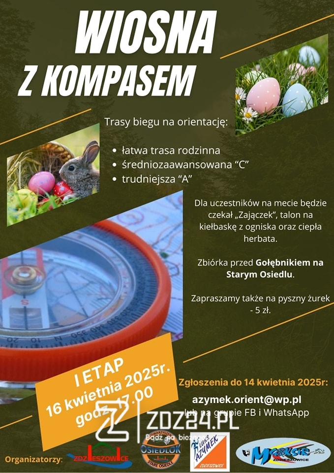W środę 16 kwietnia 2025 roku na Starym Osiedlu w Zdzieszowicach odbędzie się pierwszy etap zawodów na orientację „Wiosna z Kompasem”. Start imprezy zaplanowano na godzinę 17:00 przy Gołębniku. Wydarzenie organizowane jest w ramach lokalnej imprezy „Palenie Żuru” i zachęca mieszkańców do aktywnego spędzenia czasu na świeżym powietrzu.