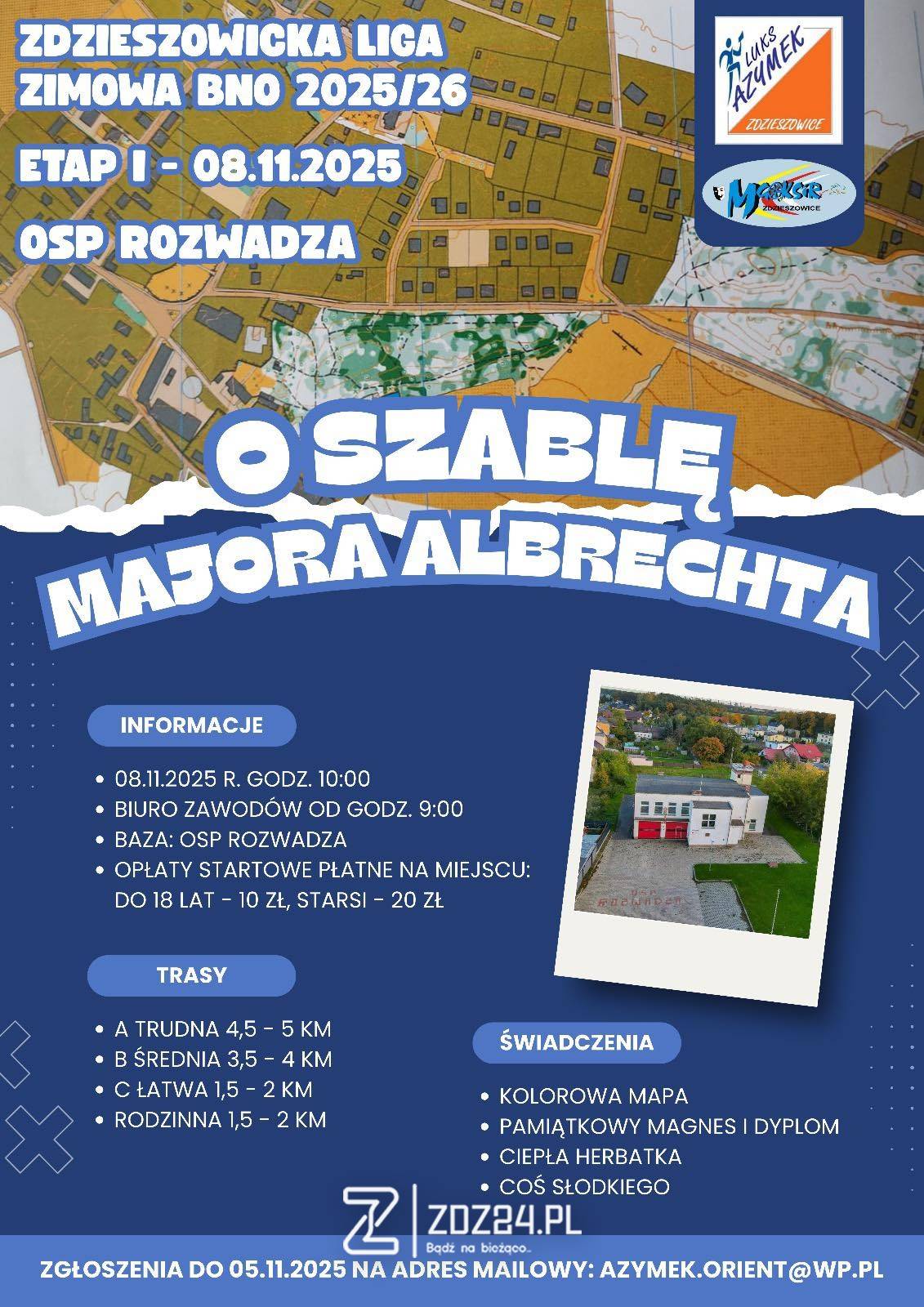 W sobotę, 8 listopada 2025 roku, w miejscowości Rozwadza odbędzie się pierwszy etap Zdzieszowickiej Ligi Zimowej w biegach na orientację 2025/26. Tegoroczna edycja odbywa się pod hasłem „Wokół zamków i pałaców”, a jej inauguracja przebiegnie pod nazwą „O Szablę Majora Albrechta”.